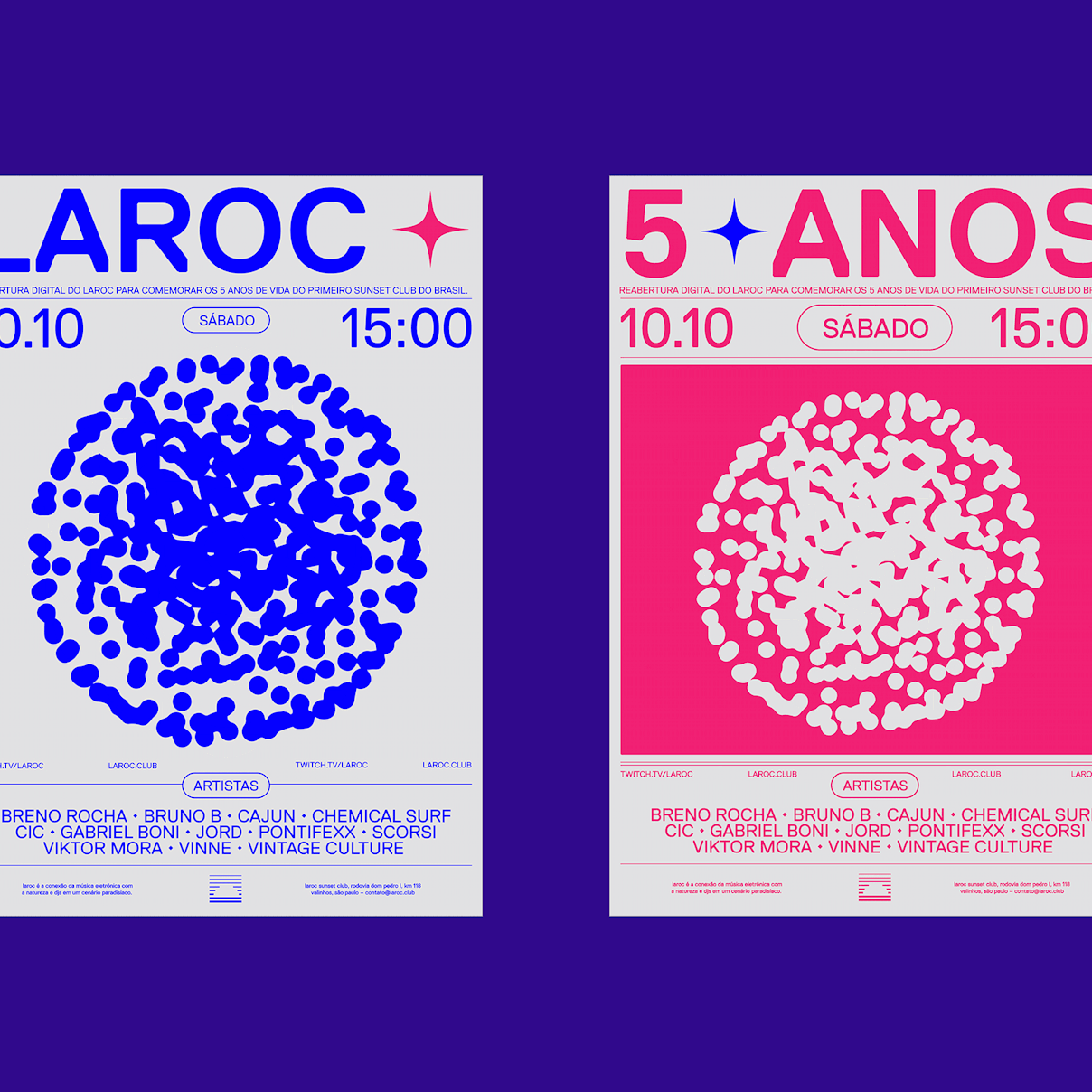 Durante a pandemia, Laroc Club fazia 5 anos e não podia deixar a data passar batida, foi quando desenvolvemos o conceito e identidade visual para o seu aniversário. Também criamos uma capa de álbum para a compilação especial, Laroc Sunset Sounds, com 10 tracks de diferentes artistas residentes, além da estratégia e narrativa com peças digitais para comunicar a Live comemorativa: after the break, comes the drop.